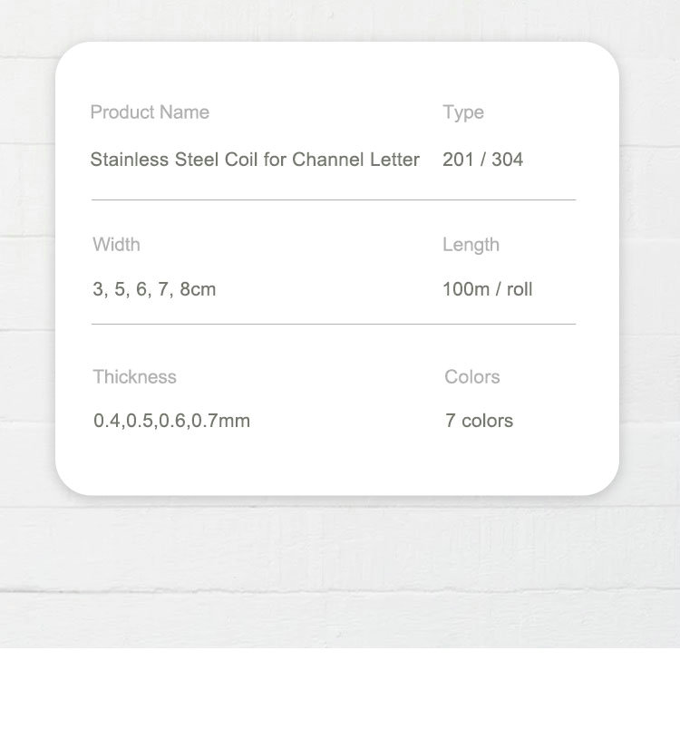 | Product name: | Stainless Steel Coil for Channel Letter |
